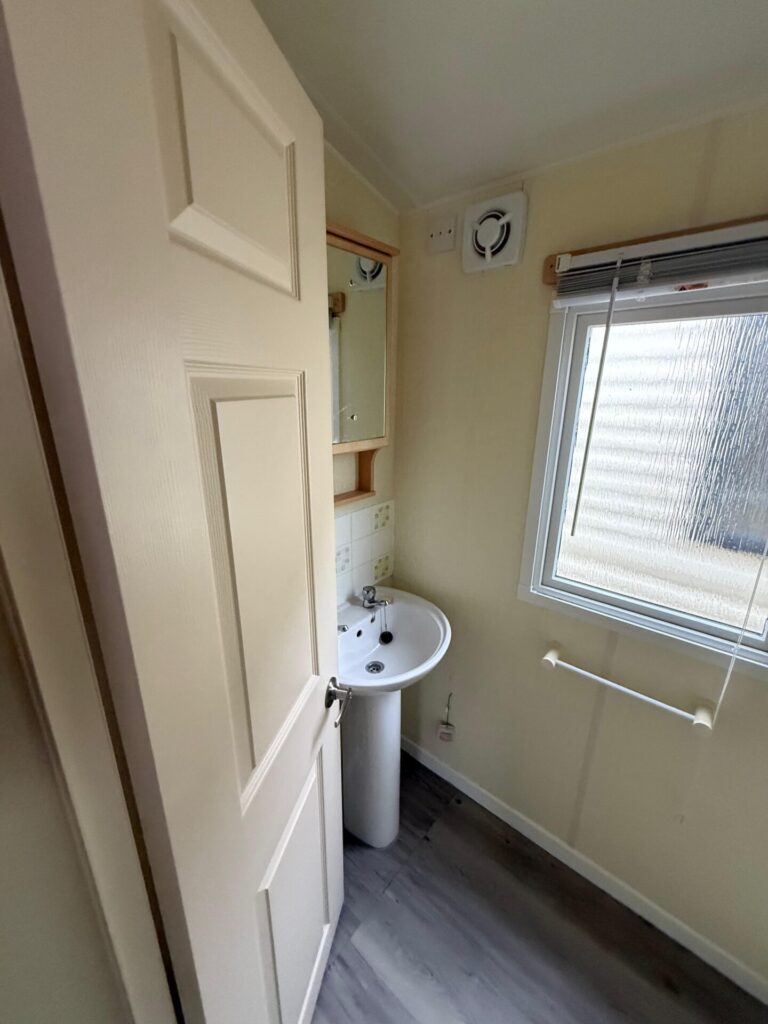 - Badkamer met wasbak en douche cabine