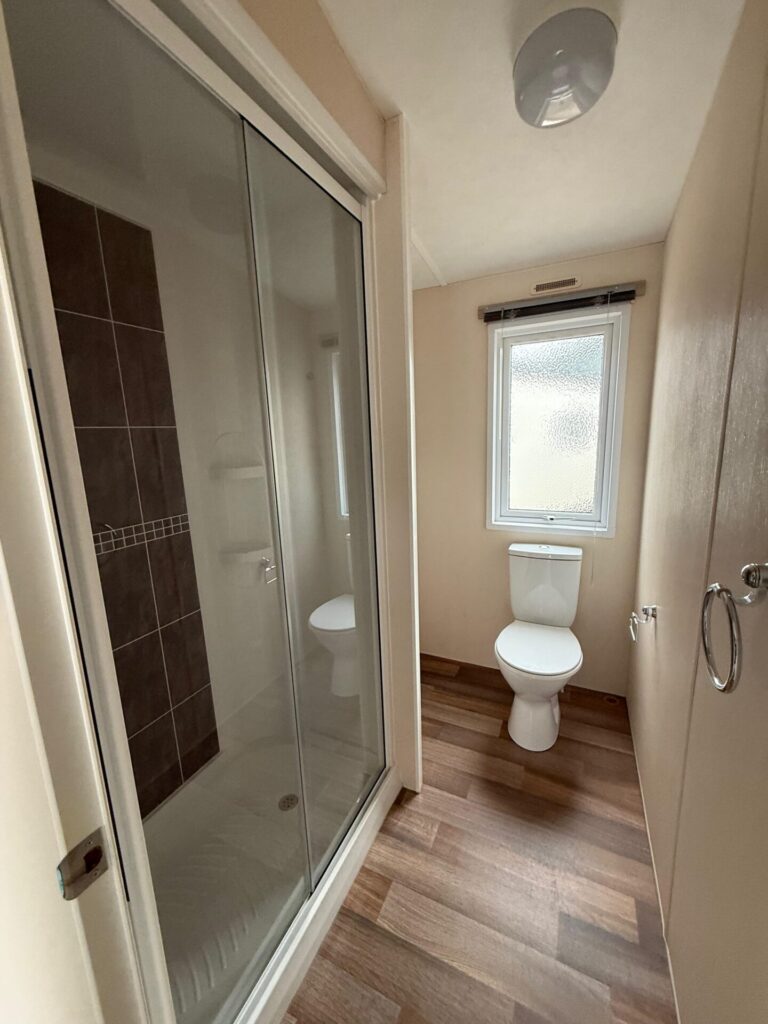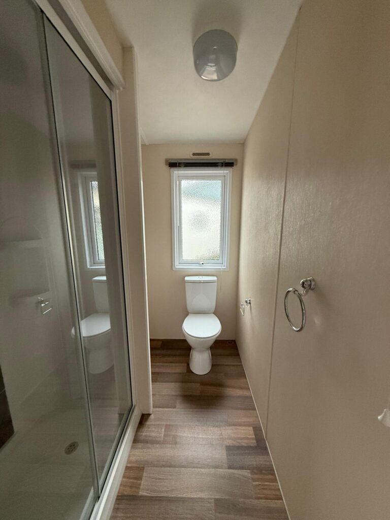 - Ruime badkamer met toilet, wasbak en douche cabine